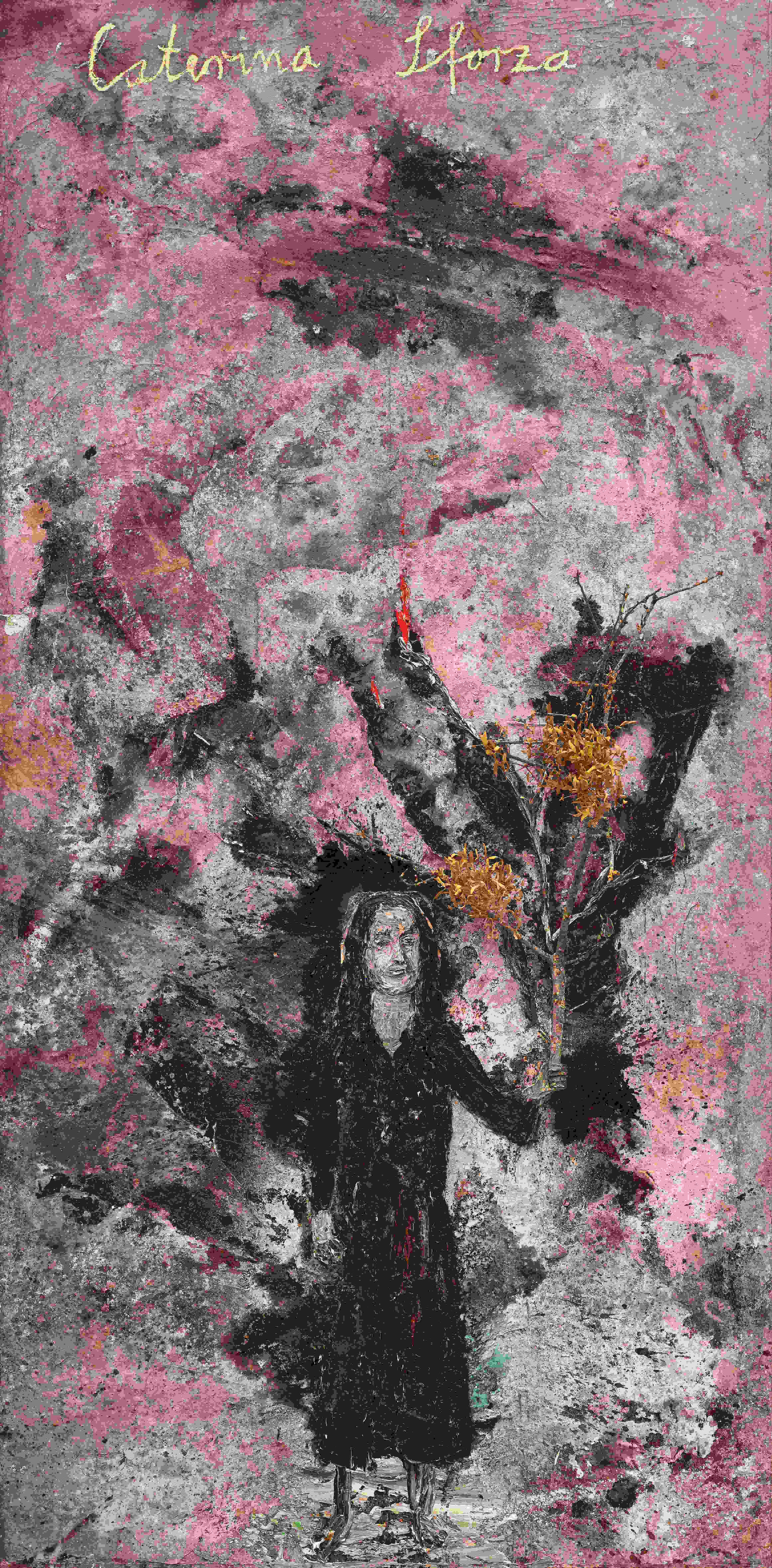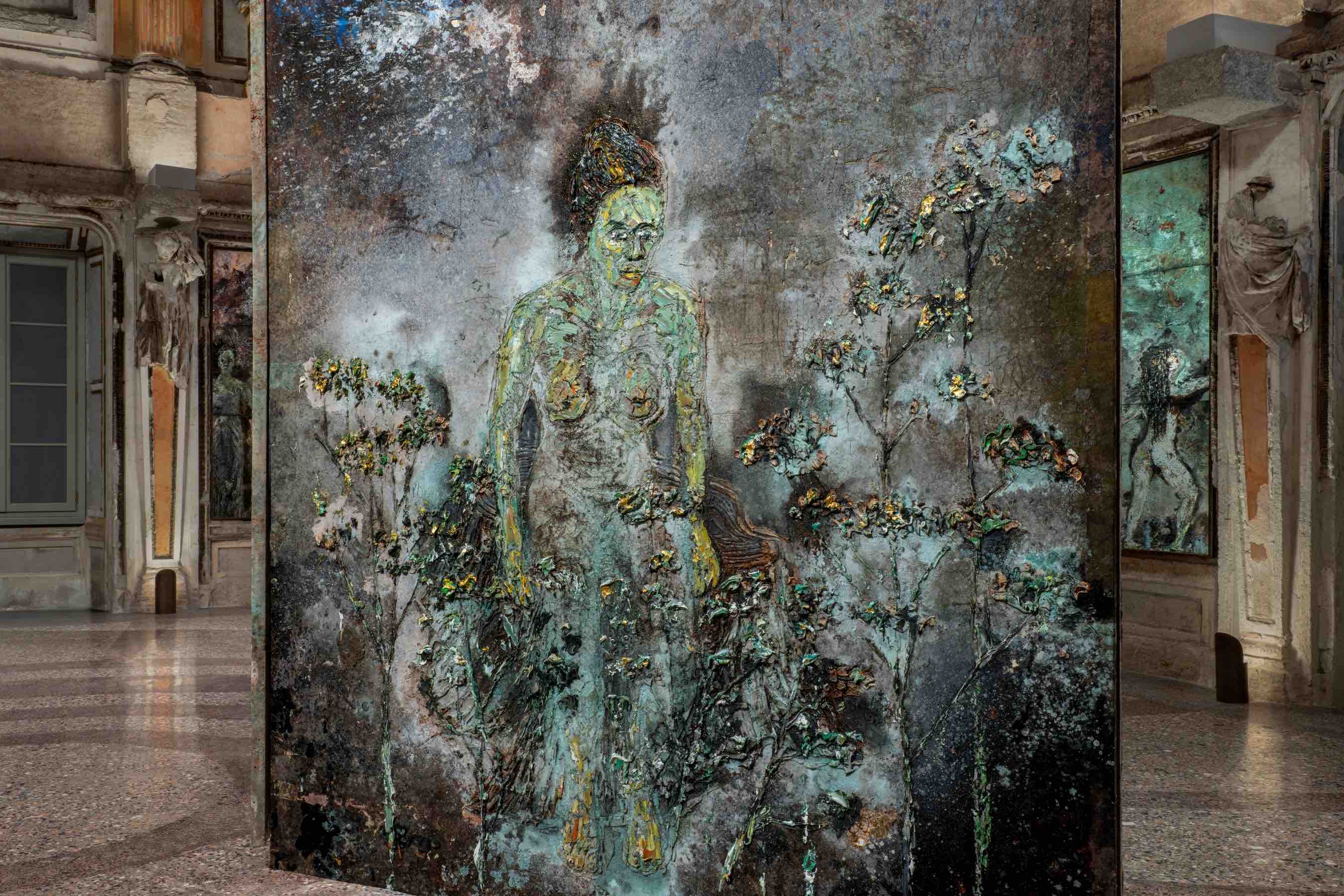 The new cycle of works, conceived specifically for the Sala delle Cariatidi, brings together 42 large-scale canvases dedicated to the female figures of alchemy, protagonists of a narrative that intertwines myth, memory and transformation.