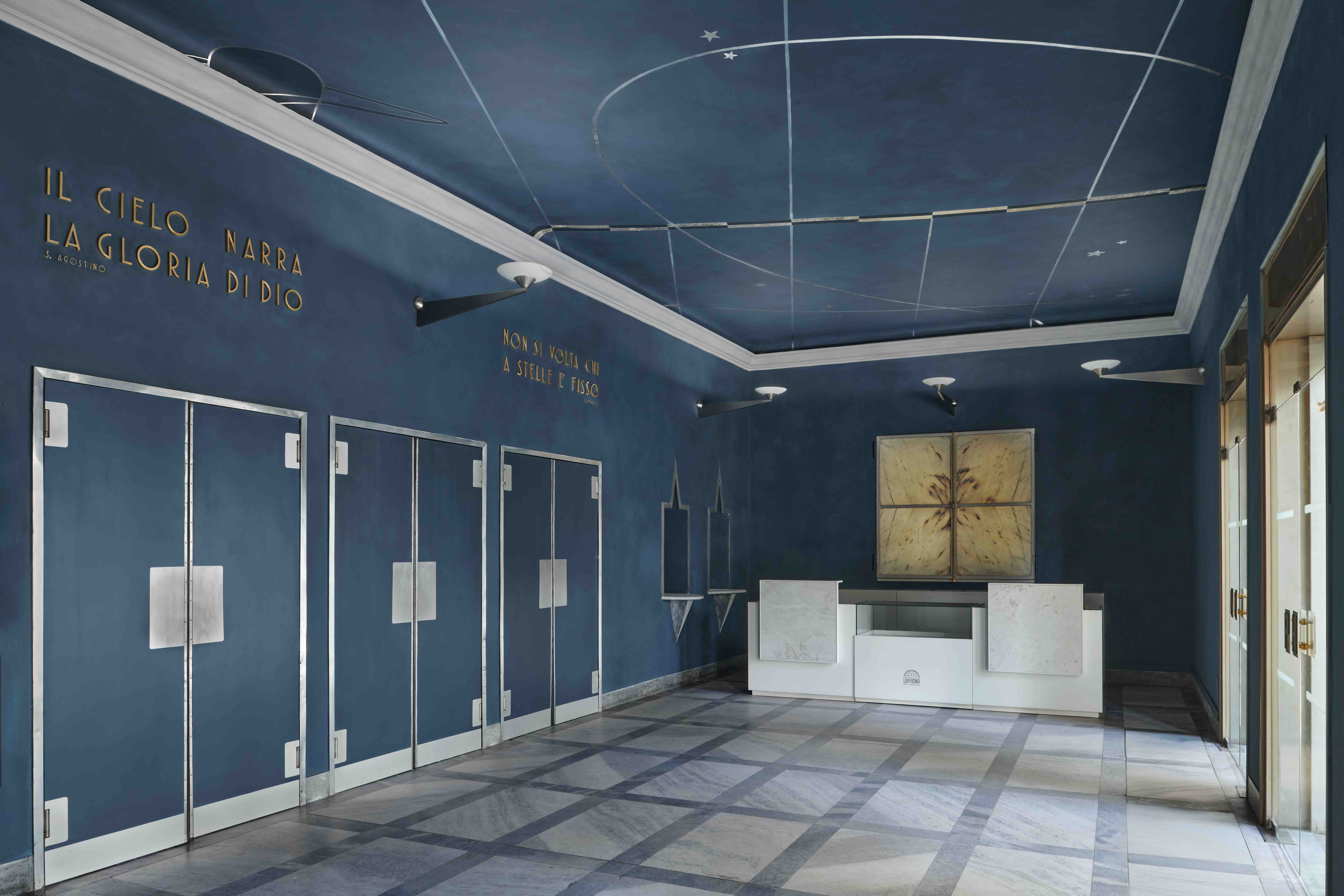 The result is a darkness dotted with stars, welcoming visitors as a slow, contemplative threshold — exactly as Portaluppi had envisioned it. The atrium once again becomes a place of wonder, thanks to the reopening of the niches, the reinstatement of the frames and the addition of new lamps inspired by 1930s models. A respectful gesture designed to restore continuity, memory and a sense of belonging to the city, while preserving the experience of preparation for the firmament that awaits in the main hall.