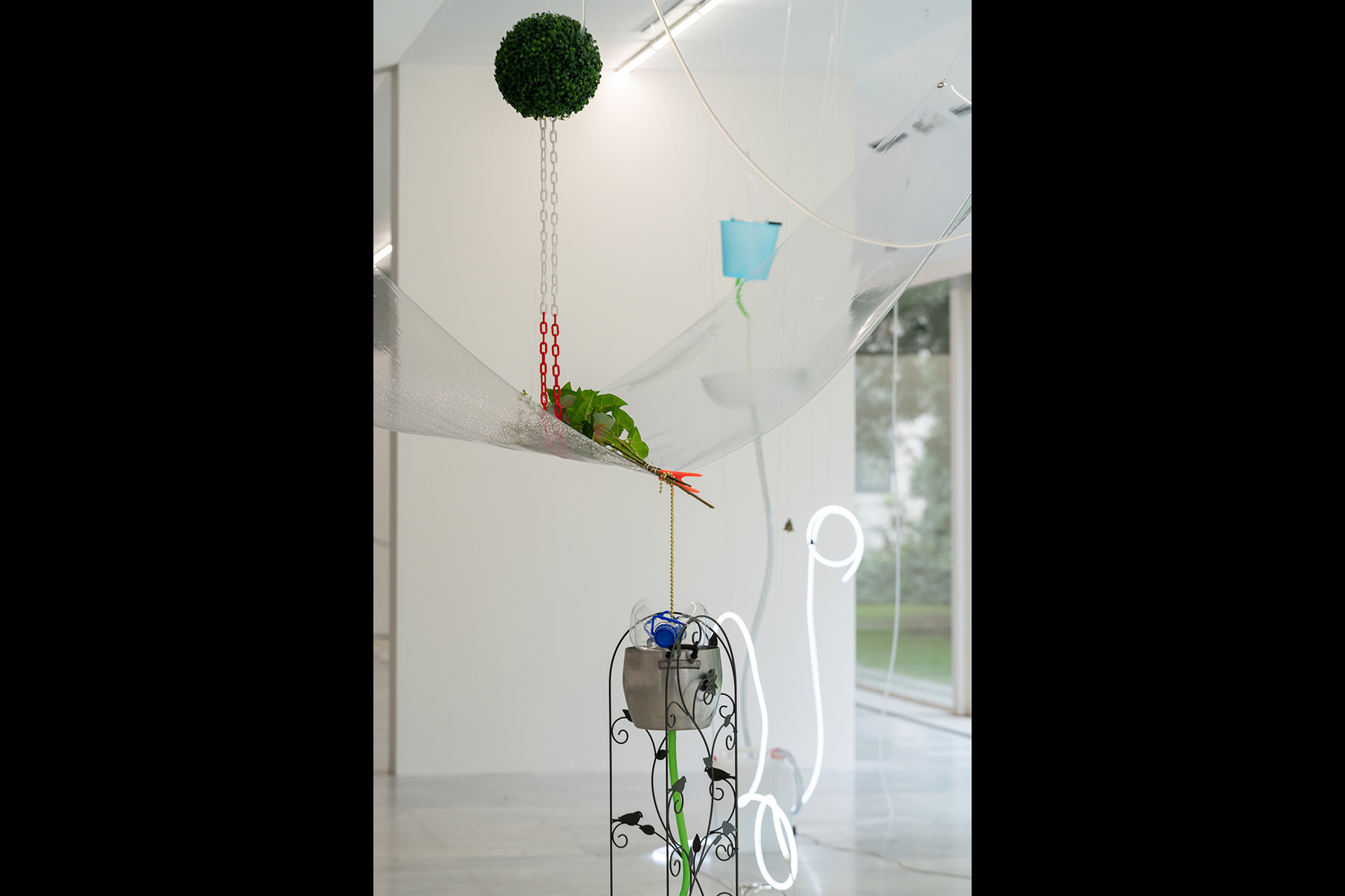 Artista giapponese nota per le sue installazioni cinetiche e assemblaggi fragili, Mohri trasforma oggetti quotidiani in ecosistemi dove forze invisibili – gravità, magnetismo, calore, umidità – diventano parte integrante dell’opera stessa.